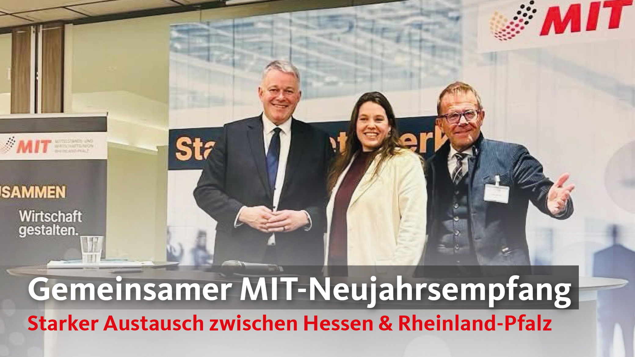 Beim gemeinsamen Neujahrsempfang der MIT Rheinland-Pfalz und der MIT Hessen kamen Vertreterinnen und Vertreter aus Wirtschaft und Politik auf Schloss Johannisberg zusammen. Die Veranstaltung bot einen hochwertigen Rahmen für Austausch, Vernetzung und wirtschaftspolitische Impulse zum Jahresauftakt.